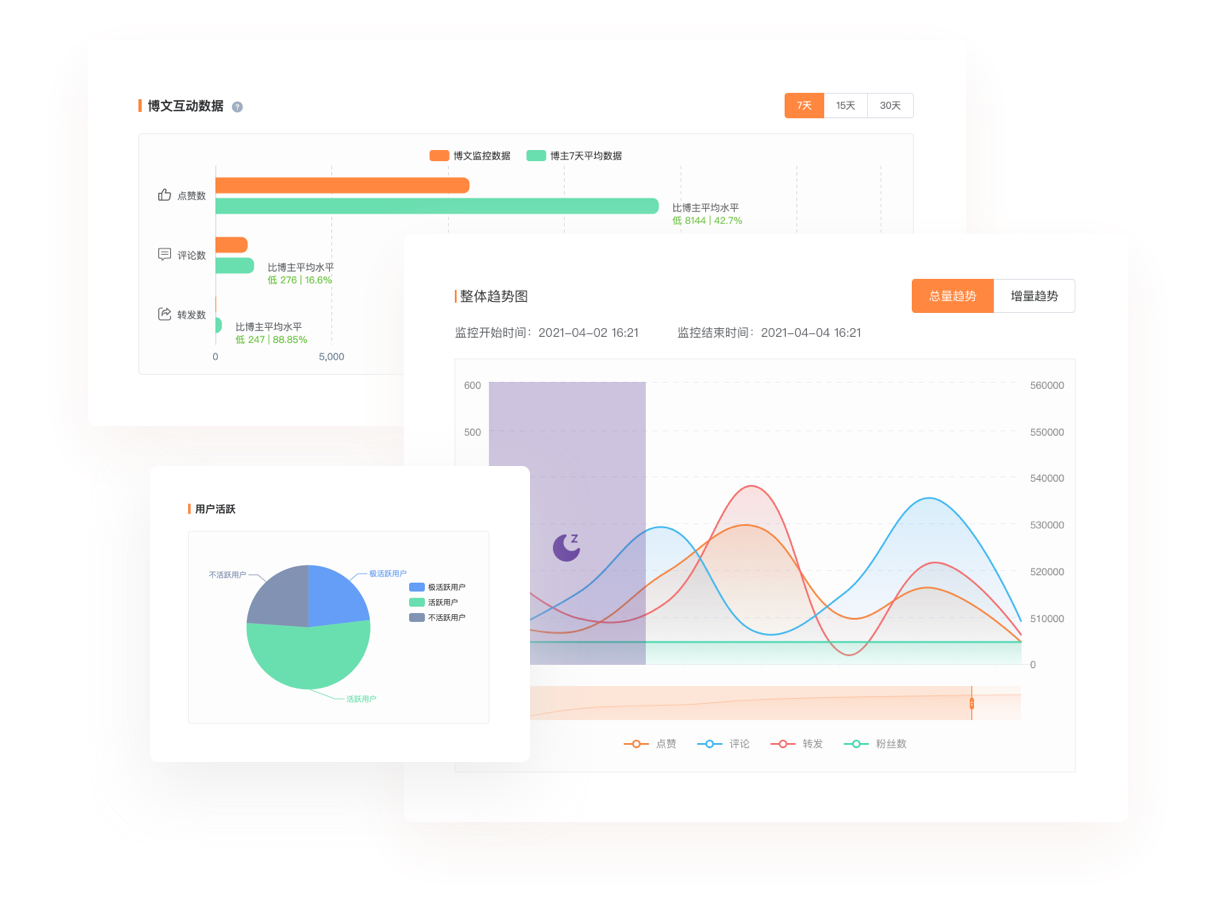 實時追蹤傳播動態,掌握互動變化趨勢,有效判斷數據真偽、分析受眾畫像